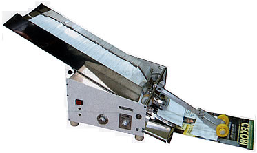 automatischen Verpackungslinien • An automatischen Verpackungsmaschinen z.B Winkelschweißer, Flow-Pack, usw. • zur Montage auf Mehrfachkopfwägemaschinen • Beschickung von Gruppen - Dispenser mit Vorsortierung • Bandbeschickung zur Kennzeichnung von Adressen oder Preisen usw. auf Umschlägen, Etiketten, Blätter... • zur Montage auf Mehrfachkopfwägemaschinen Optional ist auch die senkrechte Beschickung für dickes Material (Kartons, Hüllen, Heftchen) möglich. |